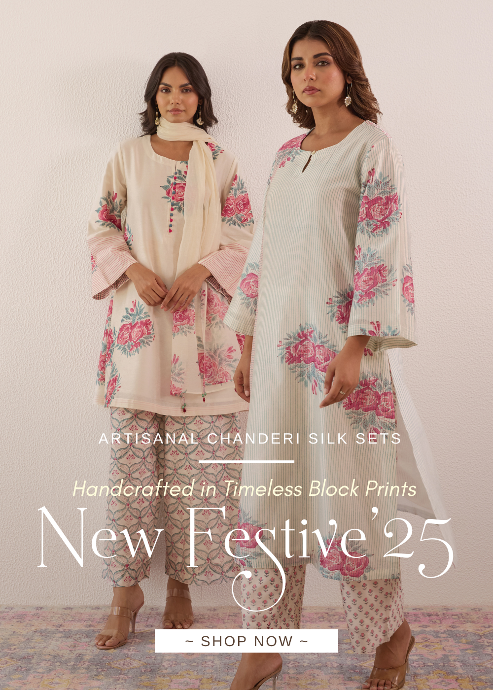 Timeless Allure: Off-White Chanderi Coord Set with Silver Embroidery